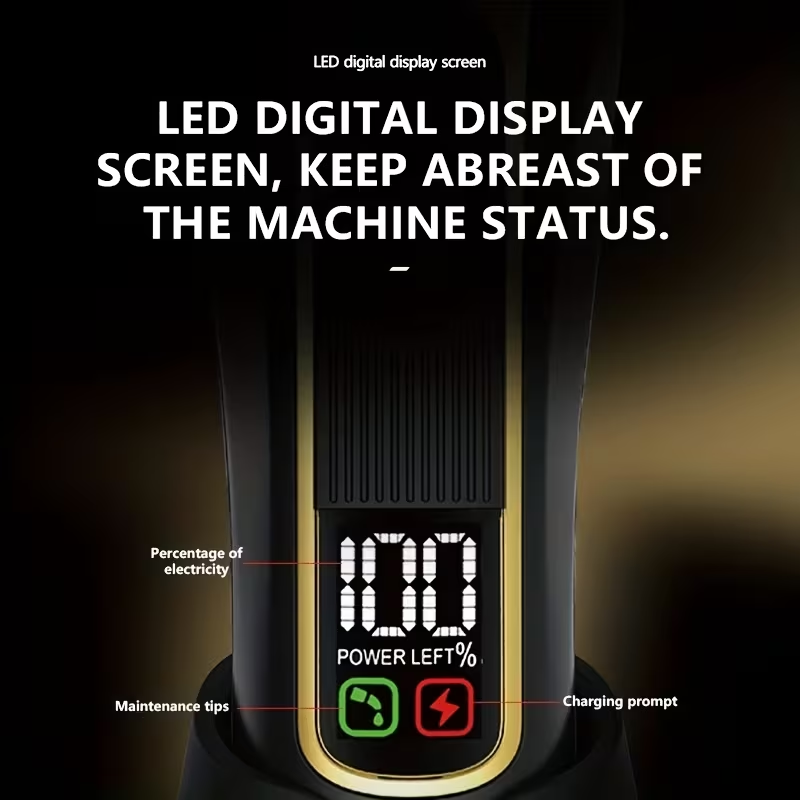 The display presents key indicators while the device is in use. Visual cues support orientation throughout the grooming process. This format keeps usage predictable and clear. Information remains easy to read at a glance.